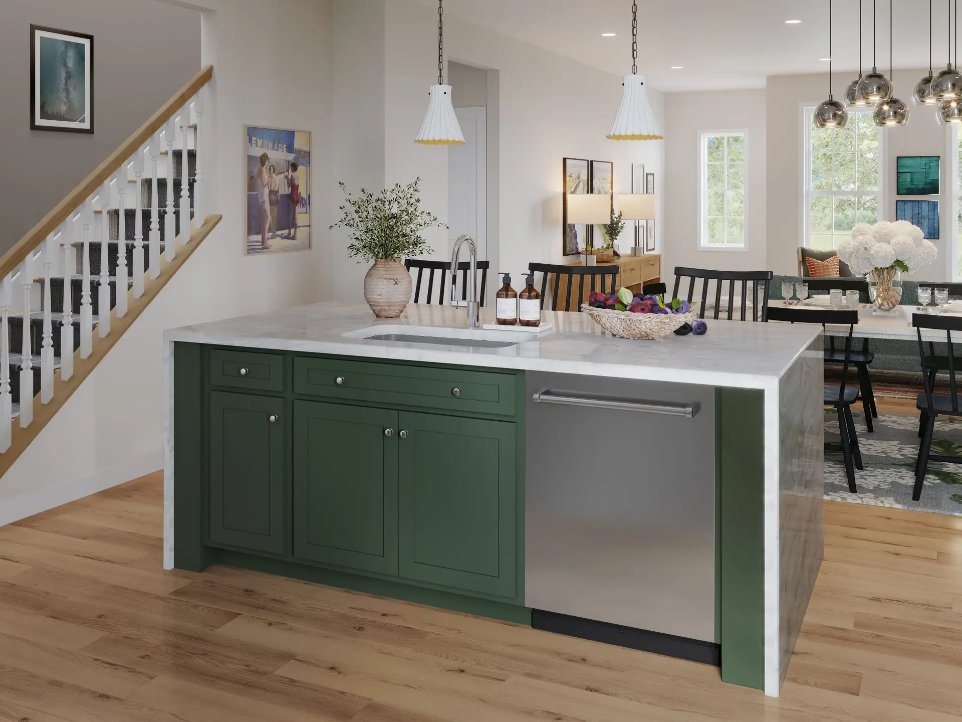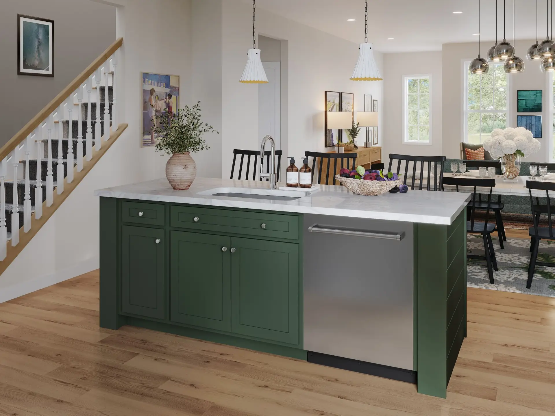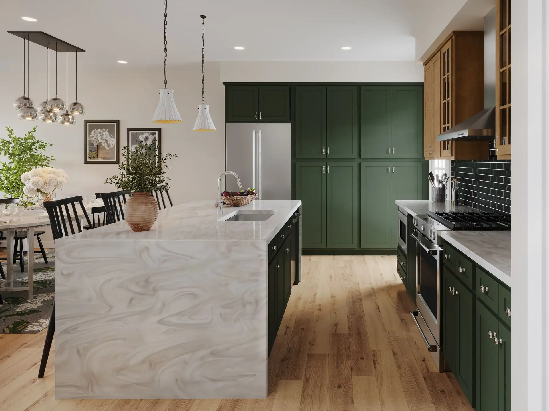 Designed for effortless living, this beautifully crafted end-unit townhome in Crescent offers added privacy and exceptional natural light, thanks to additional windows that brighten every level. The open main floor features 9’ ceilings and sun-filled living spaces where the designer kitchen flows seamlessly into the gathering area and spacious great room—ideal for both everyday comfort and stylish entertaining. Luxury vinyl plank flooring and curated finishes