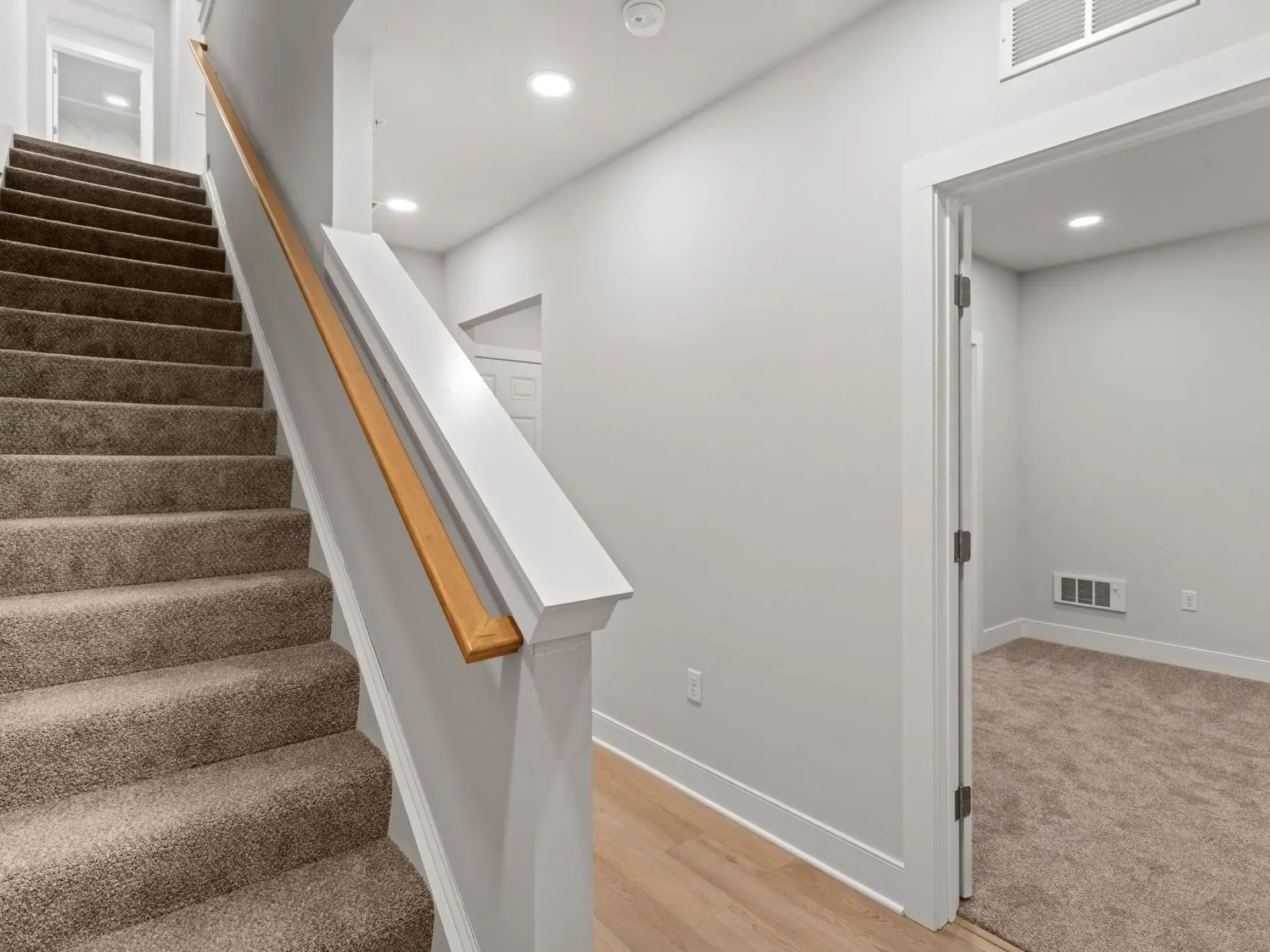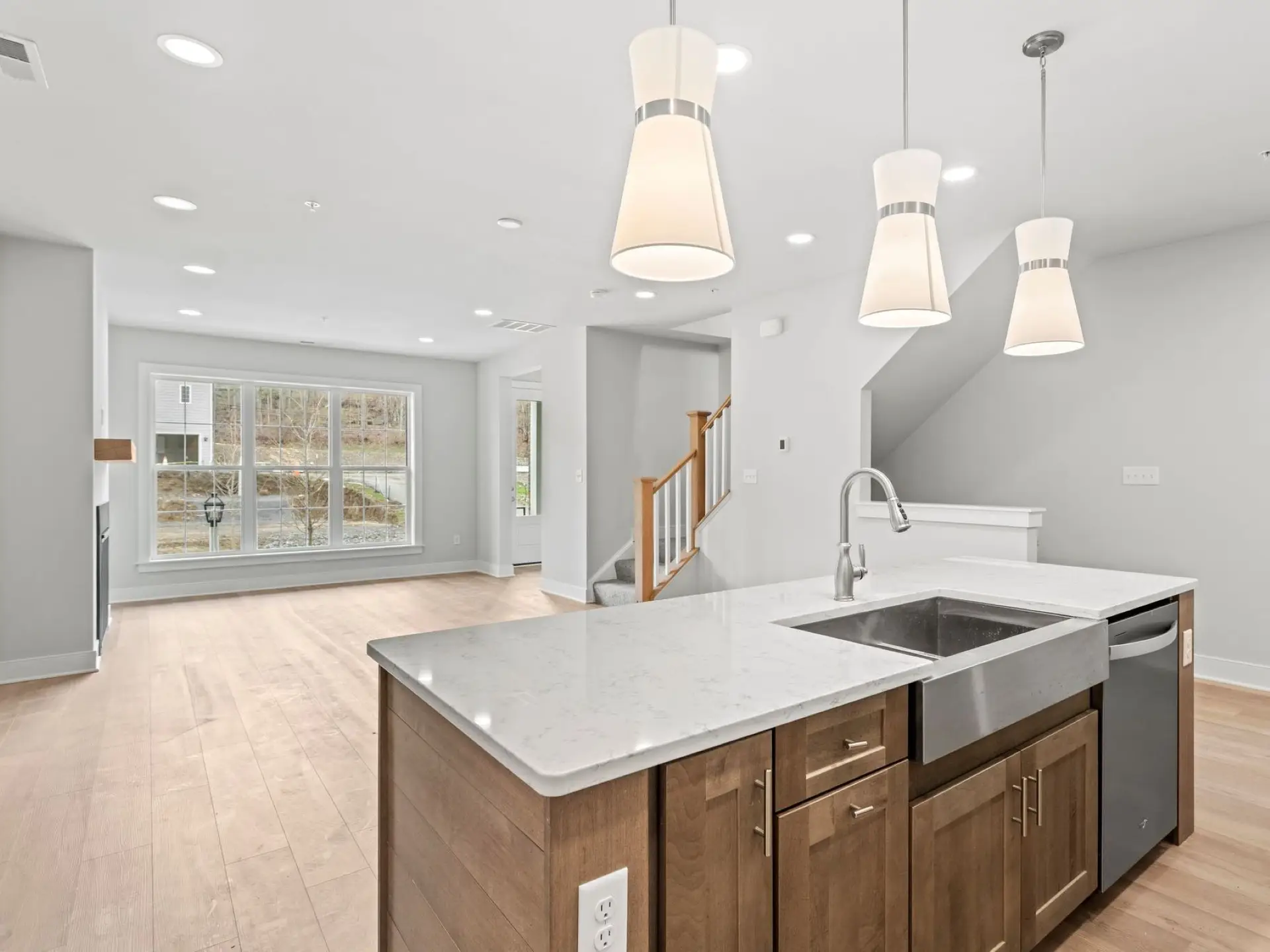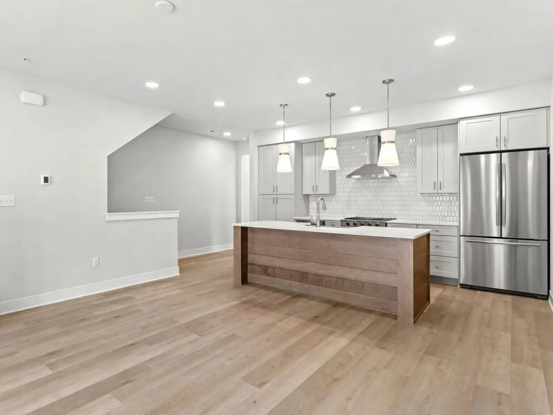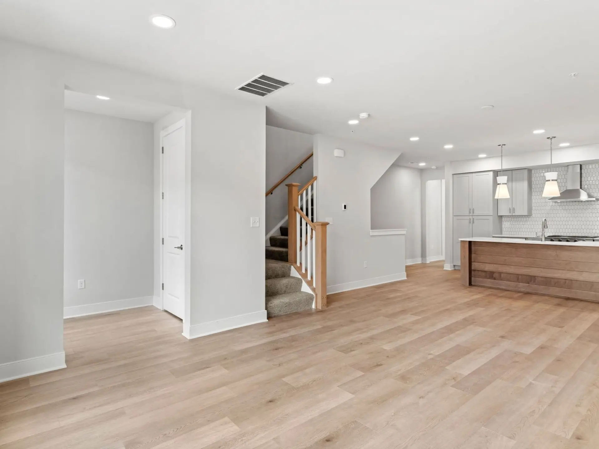This limited-edition townhome with a main floor bedroom, tucked beside the neighborhood green at Hastings, and is move-in ready. One of only five homes to feature a coveted sky deck, it offers a private outdoor escape perfect for morning coffee, evening sunsets, or gatherings under the stars. From the timeless red brick entry to the airy interiors with 9’ ceilings and 8’ doors, every detail elevates daily living. The open-concept main floor blends style and function with a sunlit great room, spacious dining area, and chef-inspired kitchen featuring an expansive eat-in island, quartz countertops, tile backsplash, and designer cabinetry in a modern mix of grey and rich stained finishes. Upstairs, the primary suite provides a relaxing retreat with a walk-in closet and spa-like bath, while an additional bedroom also enjoys its own walk-in closet and en-suite bath. The expanded gallery on this level creates a natural flow to the sky deck—your personal haven in the heart of the neighborhood. Nestled along Hastings’ tree-lined streets, you’ll find a mix of local favorites old and new, including OTB Bicycle Cafe, Recon Brewing, Mindbody Yoga + Barre, Greentree Animal Clinic, SELAH Salon and Hastings Athletic Club. This home is eligible for special incentives. Contact us for more details.